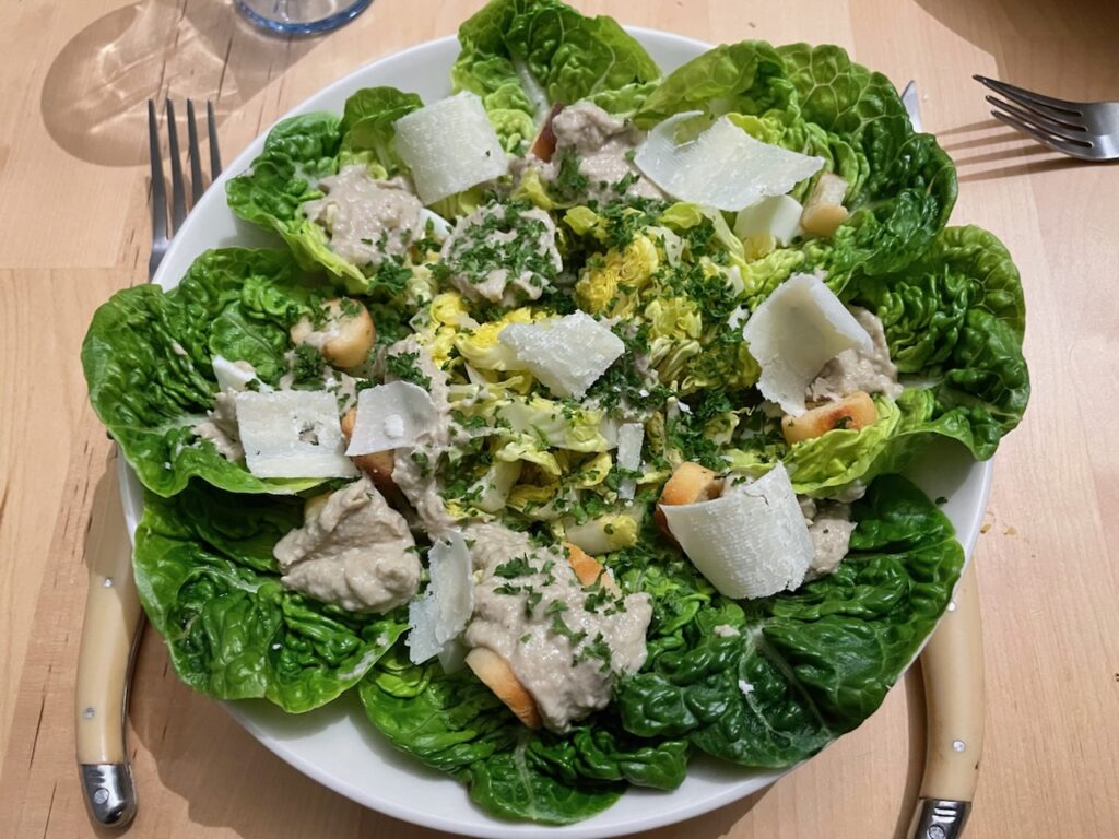Cœur de rumsteack poêlé , salade et sauce moutarde